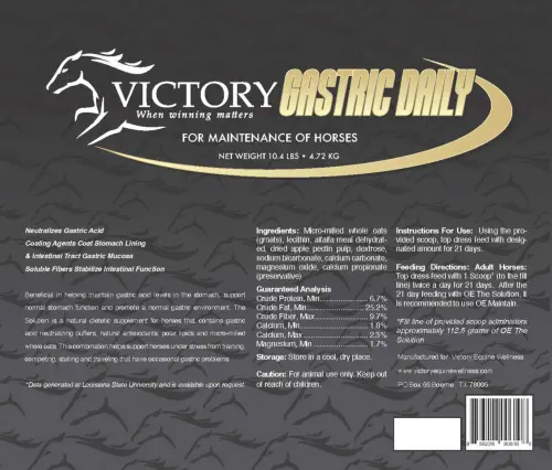 Victory Equine Daily Gut Health is a comprehensive daily feed supplement formulated to support total digestive